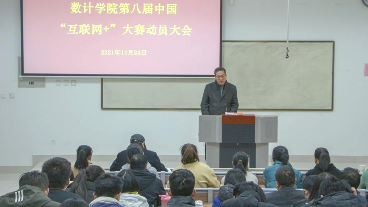 11月24日下午,數(shù)計(jì)學(xué)院舉辦第八屆中國(guó)國(guó)際“互聯(lián)網(wǎng)+”大學(xué)生創(chuàng)新創(chuàng)業(yè)大賽動(dòng)員大會(huì),學(xué)院院長(zhǎng)李超、副院長(zhǎng)王念良、教務(wù)處副處長(zhǎng)高擴(kuò)昌,學(xué)院全體無(wú)課教師和學(xué)生代表100余人參加了會(huì)議。