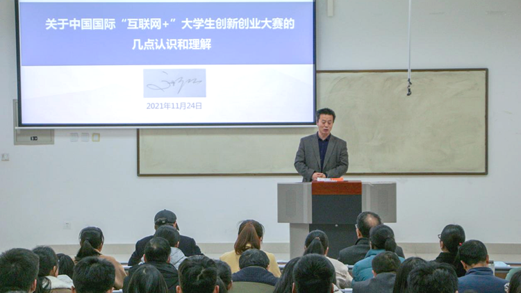高擴(kuò)昌作了題為《關(guān)于中國(guó)國(guó)際“互聯(lián)網(wǎng)+”大學(xué)生創(chuàng)新創(chuàng)業(yè)大賽的幾點(diǎn)認(rèn)識(shí)和理解》的專題報(bào)告,對(duì)“互聯(lián)網(wǎng)+”大賽政策、學(xué)科前沿及如何備賽進(jìn)行了詳細(xì)的解讀,介紹了我校歷年參賽情況,分享了自己在組織參與“互聯(lián)網(wǎng)+”大賽過(guò)程中的心得體會(huì)與寶貴經(jīng)驗(yàn)。