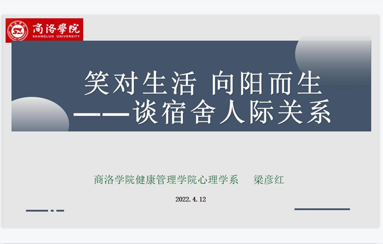 為幫助我院學(xué)生做好心理調(diào)適和學(xué)習(xí)生涯規(guī)劃,更好地處理好宿舍人際關(guān)系。4月12日,健康管理學(xué)院心理學(xué)系教師、國家二級(jí)心理咨詢師梁彥紅副教授通過在線平臺(tái)以“笑對(duì)生活 向陽而生—談宿舍人際關(guān)系”為主題作了線上公益講座。