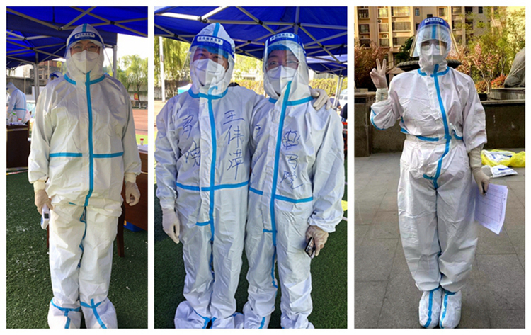 ——廣大教師響應(yīng)號召,積極參與志愿服務(wù)。4月8日首場全員核酸檢測拉開序幕,工作人員緊缺,馬克思主義學(xué)院教師安梅、王偉萍、王貝貝主動請纓,穿上防護服,變身“大白”,在炎炎烈日下協(xié)助醫(yī)護人員完成檢測任務(wù)。4月11日,組織部發(fā)出《致全校各級黨組織和廣大共產(chǎn)黨員的倡議書》后,馬克思主義學(xué)院教師黨員積極響應(yīng),踴躍報名。劉健、葉肖、鞏麗麗、王貝貝、王偉萍等同志參與了校內(nèi)志愿服務(wù),高婷婷、宋秀方等同志積極擔(dān)任了所在小區(qū)志愿者。他們起早貪黑,頂著烈日、冒著風(fēng)雨為疫情防控做出積極貢獻。還有肖歲利等非黨員教師也積極向組織表達了參加志愿服務(wù)的強烈愿望。
