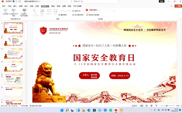 為增強學(xué)生的安全意識,牢固樹立國家安全觀,4月14日至15日,馬克思主義學(xué)院在全院范圍內(nèi)開展了“國家安全教育日”主題宣講系列活動。