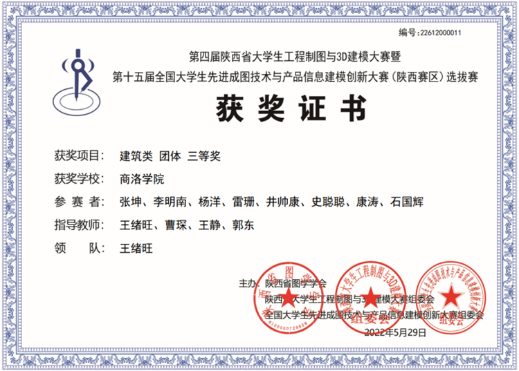 在不久前結(jié)束的第四屆陜西省大學(xué)生工程制圖與3D建模大賽暨第十五屆全國(guó)大學(xué)生先進(jìn)成圖技術(shù)與產(chǎn)品信息建模創(chuàng)新大賽(陜西賽區(qū))上,我校城鄉(xiāng)規(guī)劃與建筑工程學(xué)院派出15名參賽選手組成的團(tuán)隊(duì),與省內(nèi)57支隊(duì)伍的730余名選手進(jìn)行了激烈角逐,取得單項(xiàng)一等獎(jiǎng)1項(xiàng)、二等獎(jiǎng)2項(xiàng)、三等獎(jiǎng)7項(xiàng),并榮獲建筑團(tuán)體三等獎(jiǎng)。這是建工學(xué)院師生參加該項(xiàng)比賽以來(lái)獲得的最好成績(jī)。