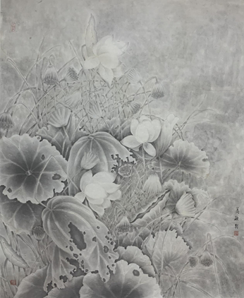 葛穎《荷韻撫風》國畫
