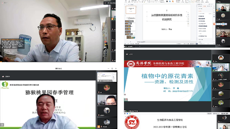 9月22日,生物醫(yī)藥與食品工程學院博士論壇2022年首場學術(shù)交流活動在云端順利舉行。本次論壇特邀我院2位客座教授——西北大學博士生導師趙桂仿,陜西省農(nóng)村科技開發(fā)中心、陜西省獼猴桃工程技術(shù)研究中心主任雷玉山研究員蒞臨云端全程指導。生物學院院長王學軍出席論壇活動。生物學院全體教師及部分畢業(yè)班學生在線上參加論壇。論壇由副院長何念武主持。