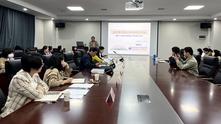 高勝利教授結(jié)合自身豐富的教學(xué)研究經(jīng)驗(yàn),分享了編寫《化學(xué)元素周期表》《非金屬同素異形體綜論》和《無(wú)機(jī)化學(xué)探究式教學(xué)叢書》的案例,指導(dǎo)在場(chǎng)教師如何做好教學(xué)研究、提升教學(xué)能力,以教學(xué)成效培養(yǎng)一流應(yīng)用型人才。他以潤(rùn)物細(xì)無(wú)聲的教育方式引導(dǎo)大家堅(jiān)持對(duì)教學(xué)工作保持矢志不渝的熱愛(ài),具備強(qiáng)烈的社會(huì)責(zé)任感,切實(shí)做到不忘初心、牢記使命。