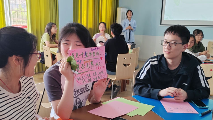 “向陽花”大學(xué)生危機(jī)預(yù)控工作室項目負(fù)責(zé)人、生物學(xué)院輔導(dǎo)員張俊華帶領(lǐng)的“贊出高情商”團(tuán)輔活動,通過“動物大集合”“相見歡,滾雪球”“贊美三段論”“正向八卦”“贊美卡片分享和制作”等環(huán)節(jié),讓同學(xué)們感受到贊美的意義和力量、善于發(fā)現(xiàn)個人平時忽略掉的閃光點,在增強(qiáng)學(xué)生自信心的同時學(xué)會高情商地贊美他人,從而增進(jìn)人際交往能力。