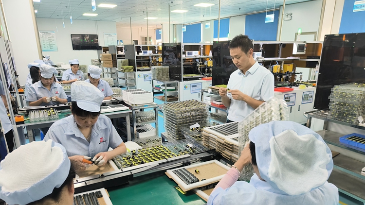 在公司總經(jīng)理孫勝華的陪同講解下,團(tuán)隊(duì)師生深入公司生產(chǎn)車間,詳細(xì)了解該公司的主要產(chǎn)品種類、電源適配器產(chǎn)品的生產(chǎn)流程和具體生產(chǎn)工藝要求。孫勝華在介紹電子信息制造業(yè)目前的智能化程度之余,勉勵(lì)參加活動(dòng)的學(xué)生要奮發(fā)圖強(qiáng),積極助力電子信息產(chǎn)業(yè)的發(fā)展。