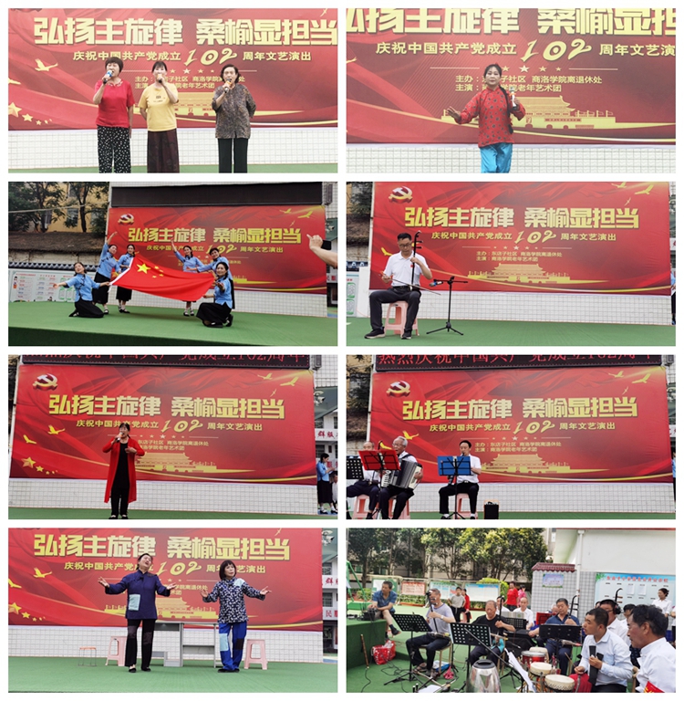 為慶祝建黨102周年,展示我校離退休黨員干部愛(ài)黨之情、向黨之心,激勵(lì)廣大老同志不忘初心跟黨走,7月1日上午,離退休職工工作處聯(lián)合東店子社區(qū)在社區(qū)院內(nèi)開(kāi)展“弘揚(yáng)主旋律,桑榆顯擔(dān)當(dāng)”文藝演出。
