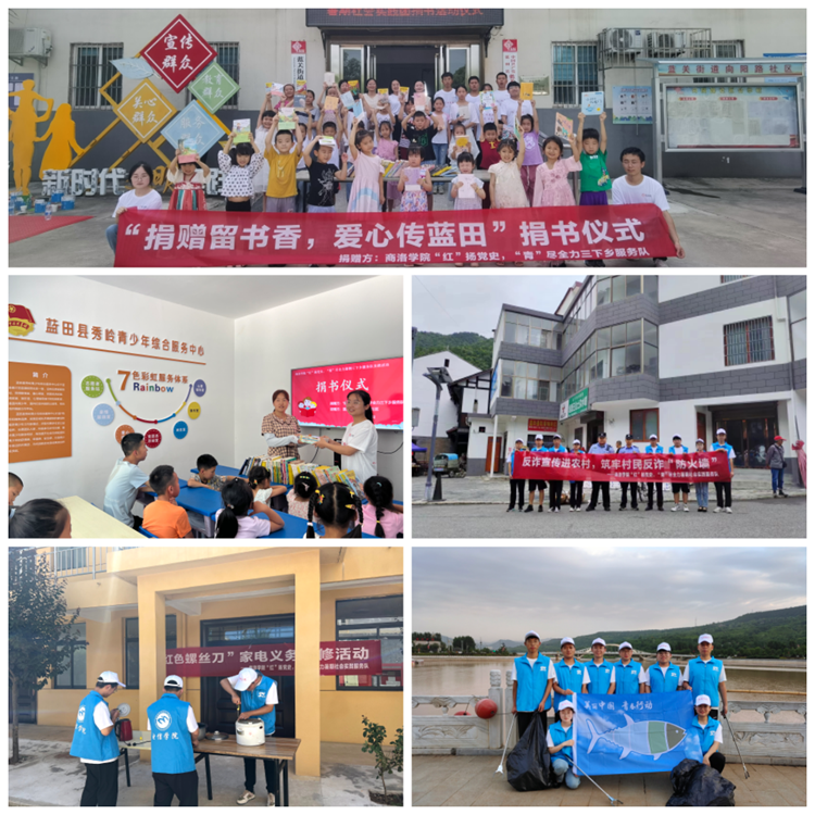 真心為民辦實事振興路上顯擔(dān)當(dāng)。實踐隊積極對接藍田縣團委,開展系列宣講及主題實踐活動。一是在藍關(guān)街道向陽路社區(qū)、三官廟鎮(zhèn)移民社區(qū)開展捐書贈書活動,現(xiàn)場捐書一百余本;二是開展“讀紅色故事,學(xué)紅色精神”主題教育宣講活動;三是與當(dāng)?shù)厍嗌倌暌黄?,開展環(huán)保人人有責(zé),共護灞河水活動。系列活動的開展,充分彰顯了電信青年學(xué)子助力鄉(xiāng)村振興的責(zé)任與擔(dān)當(dāng)。