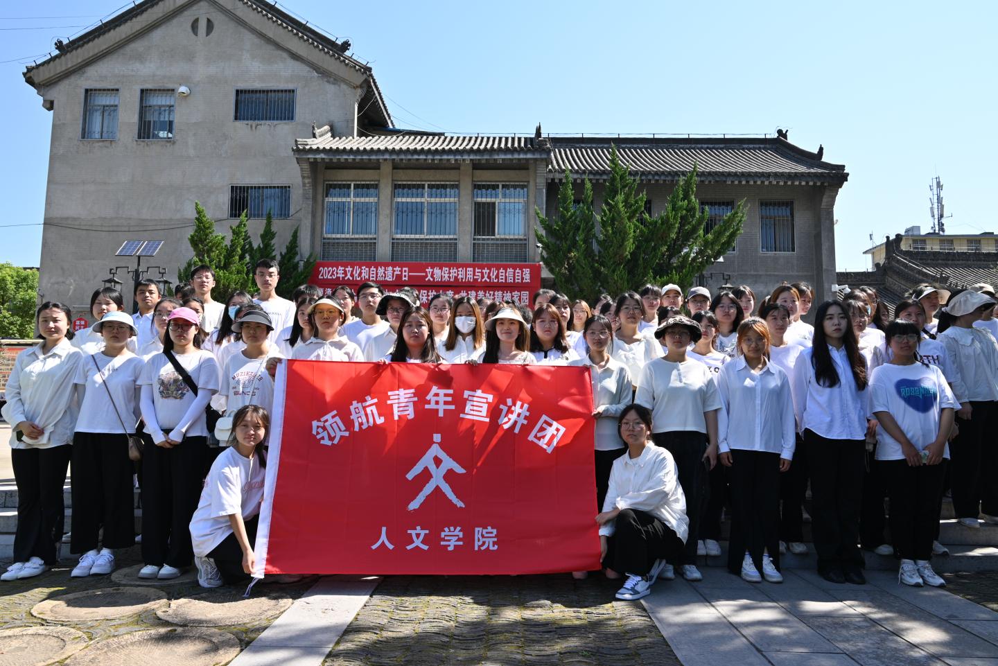 為促進黨建、思政教育與文化素質(zhì)教育融合發(fā)展,讓高校思政教育“實”起來、“活”起來、“動”起來,人文學(xué)院“領(lǐng)航青年”宣講團主動鏈接地方博物館、圖書館、科技館、展示館等特色場館思政教育資源,并結(jié)合線上多媒體平臺,通過“互聯(lián)網(wǎng)+高校+場館+社團+N”的模式,以主題教育、志愿服務(wù)、理論宣講、網(wǎng)絡(luò)作品等形式,打造具有示范性、創(chuàng)新性的思政一體化、個性化場館“第二課堂”。