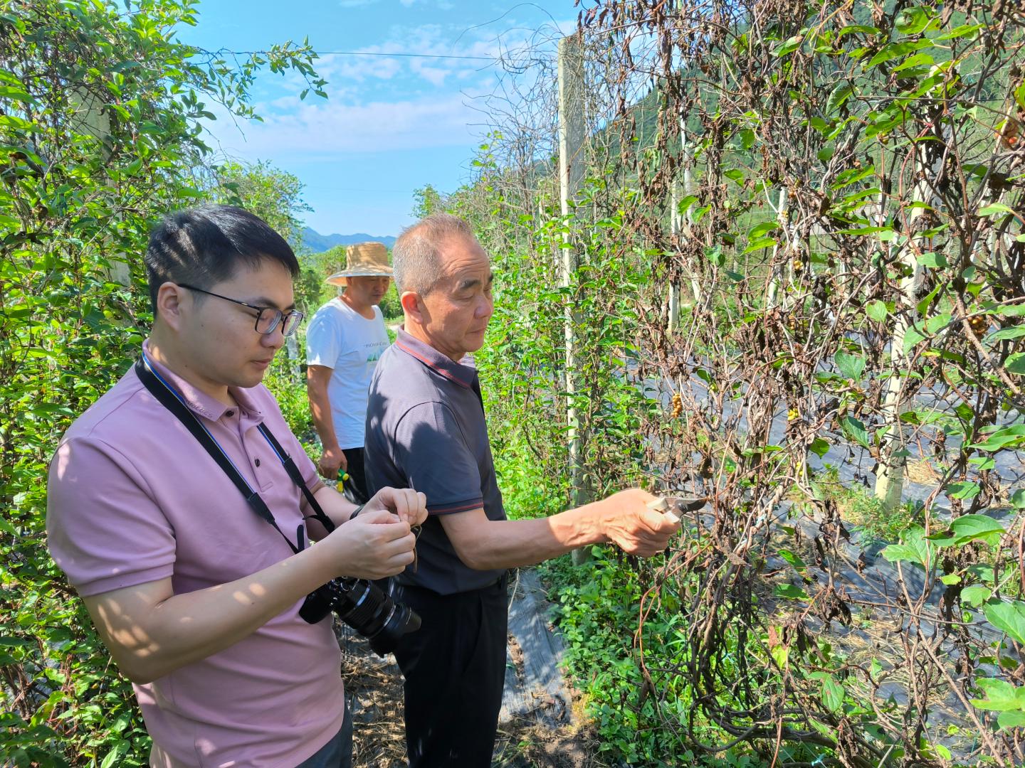 為持續(xù)深化產(chǎn)教融合,充分發(fā)揮高校學(xué)科和專業(yè)優(yōu)勢(shì),提升根植地方行動(dòng)工作實(shí)效,8月26日,數(shù)計(jì)學(xué)院智慧農(nóng)業(yè)根植地方服務(wù)團(tuán)隊(duì)負(fù)責(zé)人劉愛軍,生物學(xué)院商洛市中藥材病蟲害綜合防治技術(shù)研究中心博士王洋、孟銀鳳深入根植地方合作單位——洛南煜正中藥材專業(yè)合作社千畝五味子種植基地,開展根植地方調(diào)研及科技服務(wù)活動(dòng),并與基地相關(guān)人員進(jìn)行了交流。