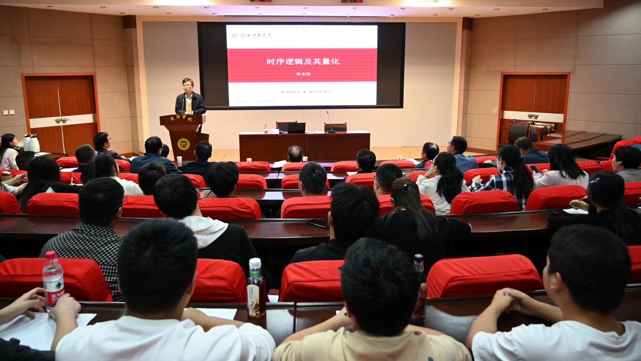 10月13日,數(shù)計學院邀請我??妥淌?、陜西師范大學博士生導(dǎo)師李永明教授來校作題為《時序邏輯及其量化》的學術(shù)報告。學院全體教師及80余名學生代表參加了報告會。報告會由數(shù)計學院副院長李會榮主持。