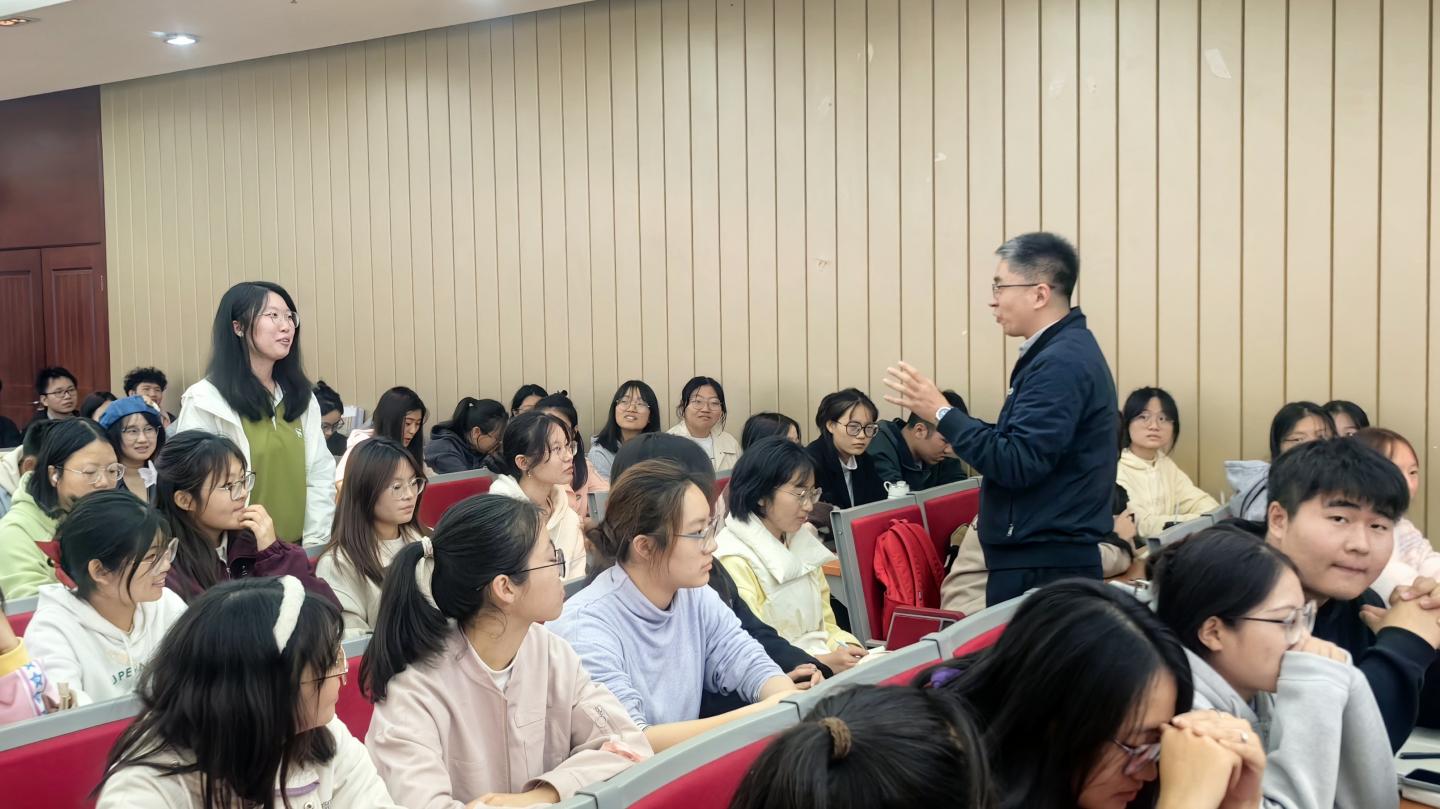 徐斌結(jié)合自己多年英語(yǔ)教學(xué)與研究經(jīng)驗(yàn),通過(guò)對(duì)英語(yǔ)四級(jí)考試現(xiàn)狀的綜合剖析,深入講解了考試重要性、備考策略、復(fù)習(xí)方法、考試技巧及寫(xiě)作專(zhuān)項(xiàng)突破等方面以及如何利用學(xué)校購(gòu)買(mǎi)的3E英語(yǔ)多媒體數(shù)據(jù)庫(kù)進(jìn)行有效備考。通過(guò)中英雙語(yǔ)講授、鮮活生動(dòng)的案例、句句點(diǎn)睛的解讀,為我校學(xué)生講授了一堂干貨滿滿的CET-4備考指南課。講座受到在場(chǎng)學(xué)生的一致好評(píng),現(xiàn)場(chǎng)氛圍熱烈高漲。