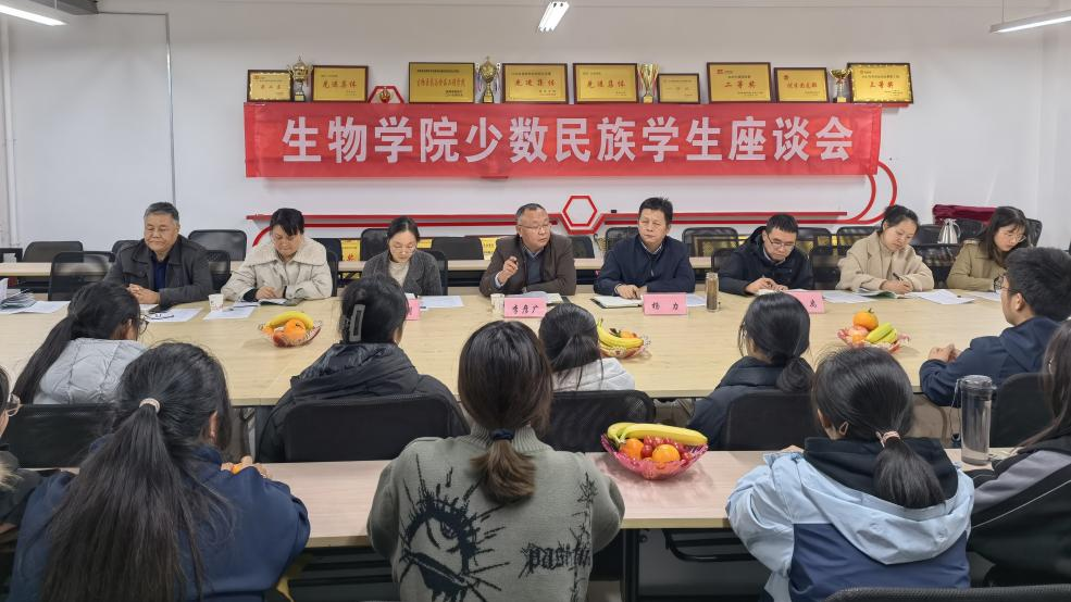 為落實(shí)“立德樹(shù)人”根本任務(wù),扎實(shí)做好少數(shù)民族學(xué)生管理服務(wù)工作,教育引導(dǎo)青年學(xué)子樹(shù)牢中華民族共同體意識(shí),11月10日,生物學(xué)院黨委召開(kāi)少數(shù)民族學(xué)生座談會(huì)。學(xué)工部部長(zhǎng)李彥廣,統(tǒng)戰(zhàn)部副部長(zhǎng)于曉明出席會(huì)議。生物學(xué)院全體學(xué)工人員和24名少數(shù)民族學(xué)生參加會(huì)議。會(huì)議由生物學(xué)院黨委書(shū)記楊力主持。