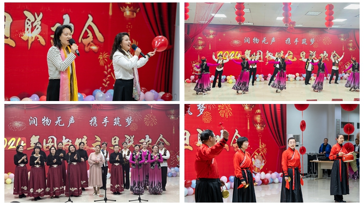 晚會(huì)節(jié)目以歌頌祖國(guó),誦讀經(jīng)典為主題,15個(gè)參演節(jié)目各具特色,亮點(diǎn)紛呈。詩歌朗誦《詩意中國(guó)》《我的南方和北方》描繪和贊美了中國(guó)大好河山,表達(dá)了對(duì)祖國(guó)的深深熱愛和美好祝愿。三句半《圖圖新語》通過對(duì)2023年圖書館工作的回顧,表達(dá)了館員們對(duì)圖書館事業(yè)的熱愛之心。民族舞蹈《格桑拉》《大阪城的姑娘》帶領(lǐng)觀眾們領(lǐng)略祖國(guó)少數(shù)民族濃郁的別樣文化風(fēng)情。歌曲合唱《月下情緣》《唱的幸福落滿坡》通過優(yōu)美的旋律,表達(dá)了對(duì)美好生活的謳歌和贊美。整場(chǎng)晚會(huì)持續(xù)了2個(gè)小時(shí),精彩不斷,高潮迭起,贏得了臺(tái)下師生的陣陣掌聲。