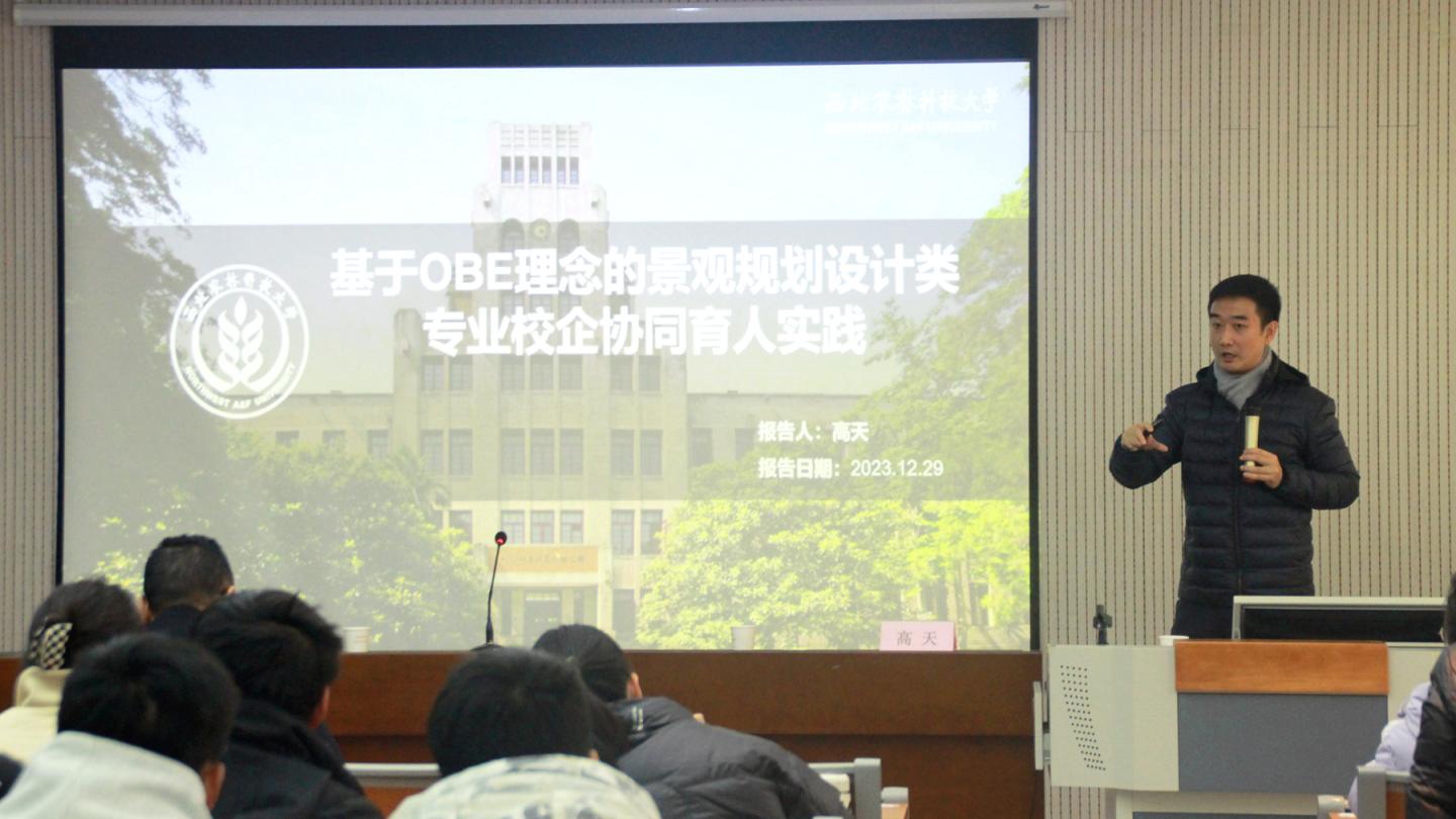 高天教授結(jié)合自身從事(風(fēng)景)園林專業(yè)教學(xué)和科研實踐,分別以《基于OBE理念的景觀規(guī)劃設(shè)計類專業(yè)校企協(xié)同育人實踐》《跨學(xué)科研究引領(lǐng)(風(fēng)景)園林學(xué)科發(fā)展》為題,為師生們作了兩場精彩的報告。他結(jié)合教學(xué)團隊長期的教學(xué)改革實踐和所取得的成果,從獨特視角剖析了基于OBE理念的園林專業(yè)人才培養(yǎng)模式,并詳細介紹了園林專業(yè)校企協(xié)同育人合作方式,基于項目落地的過程考核,科創(chuàng)項目和學(xué)科競賽準(zhǔn)備及參賽要點等。針對園林專業(yè)師生科研課題選擇問題,提出圍繞一種植物、針對一個點的T字型研究思路,并結(jié)合生態(tài)文明建設(shè)和鄉(xiāng)村振興分析了(風(fēng)景)園林學(xué)科研究熱點問題,激發(fā)了學(xué)生專業(yè)興趣。