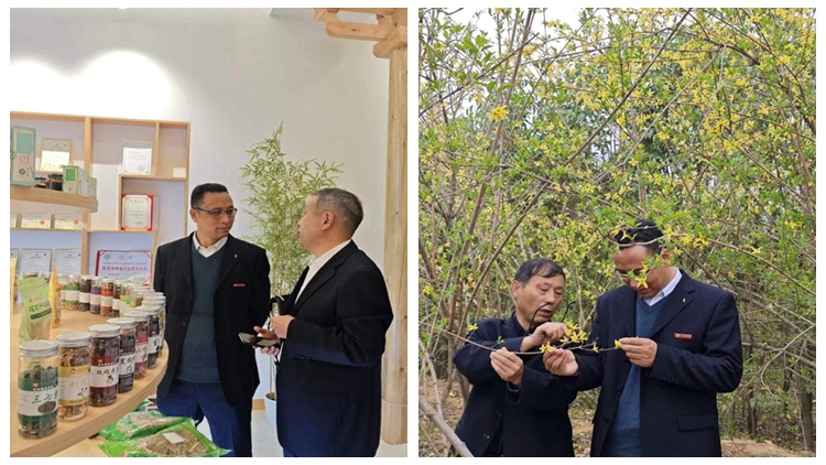 會后,王學(xué)軍一行參觀了新雨丹中藥材科技產(chǎn)業(yè)園及山茱萸和連翹基地。學(xué)院團(tuán)隊與企業(yè)工程師團(tuán)隊圍繞中醫(yī)藥產(chǎn)業(yè)及如何提高連翹產(chǎn)品質(zhì)量和藥效進(jìn)行溝通交流。