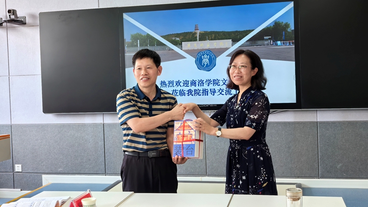 張文諾對寧夏師范大學(xué)文學(xué)院的熱情接待表示感謝,對寧夏師范大學(xué)文學(xué)院在發(fā)展過程中取得的一系列成績給予了高度評價,并介紹了我校人文學(xué)院辦學(xué)條件、師資隊伍建設(shè)、專業(yè)設(shè)置、科學(xué)研究、教育教學(xué)、人才培養(yǎng)等相關(guān)情況。張文諾代表人文學(xué)院向?qū)Ψ劫浰汀段骶┕适隆贰堆b臺》《主角》《喜劇》等圖書。