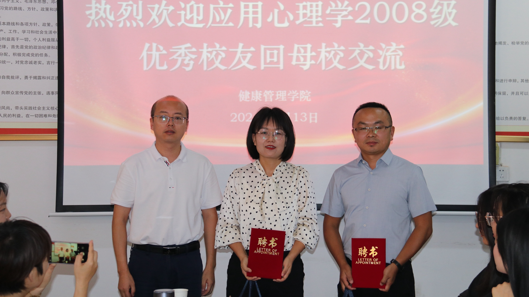 會上,王攀還為兩位校友頒發(fā)了就業(yè)創(chuàng)業(yè)指導師聘書。