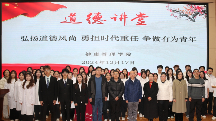 為講好身邊故事,激勵青年學(xué)子陶冶道德情操、弘揚正氣、開闊視野,提升品德修養(yǎng),營造“積小德為大德,積小善為大善”的良好風(fēng)氣,12月17日下午,健康管理學(xué)院在圖書館二樓報告廳舉辦了“弘揚道德風(fēng)尚 勇?lián)鷷r代重任 爭做有為青年”道德講堂活動。院黨委書記王攀、各系主任、全體輔導(dǎo)員及400余名在校學(xué)生參與活動。
