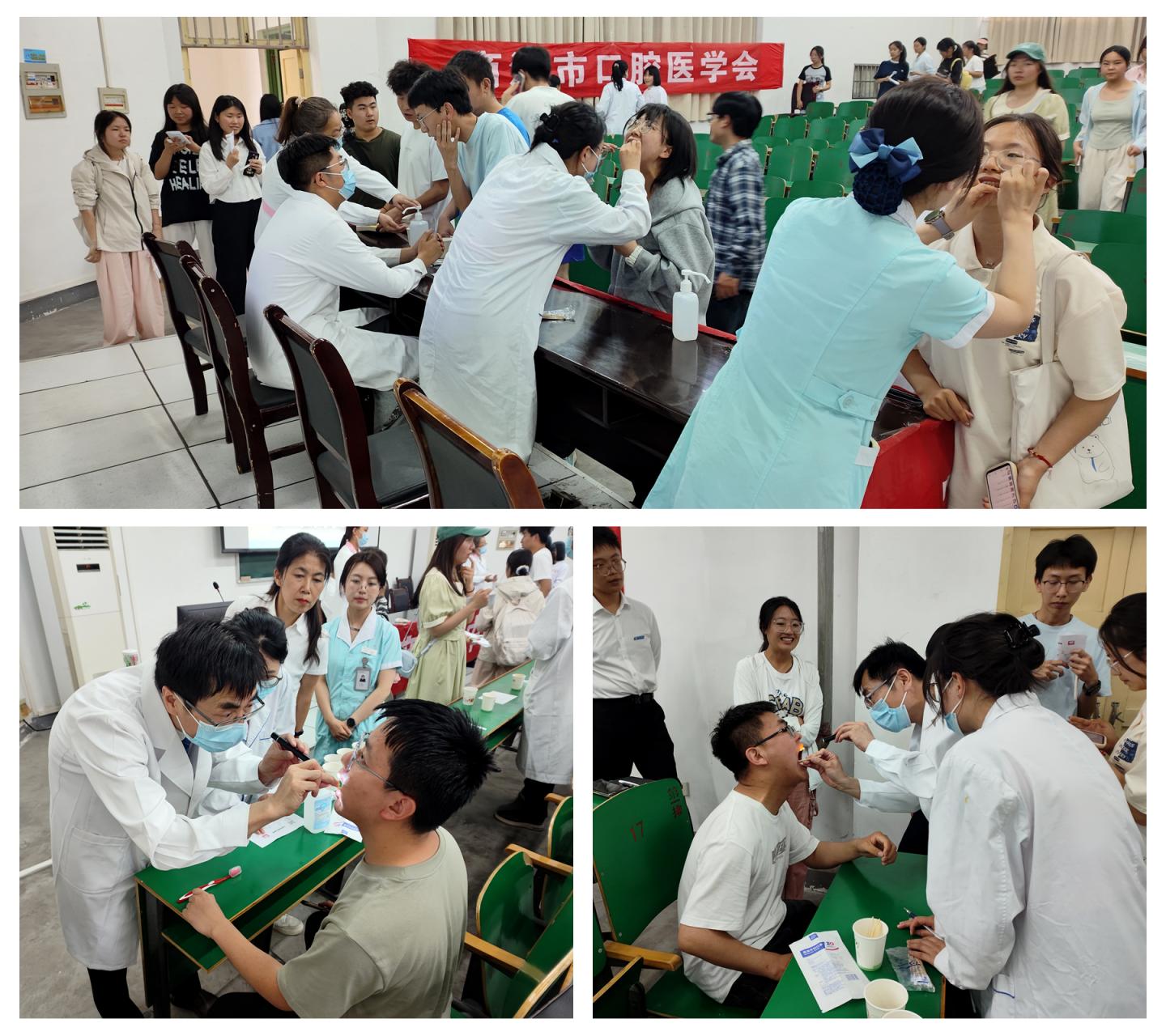 為了加深同學們對有效刷牙方式的印象,醫(yī)務人員向到場的每位同學發(fā)放牙刷并現(xiàn)場示范刷牙方式。在互動環(huán)節(jié),面對同學們提出的“用什么牙膏可以刷白牙齒”“用什么漱口水可以緩解牙齦發(fā)炎”等問題,李阿峰耐心解答,現(xiàn)場氣氛熱烈。講座結(jié)束后,商洛市中心醫(yī)院口腔科醫(yī)師團隊現(xiàn)場為有需要的同學進行了義診咨詢,醫(yī)師們?yōu)閹熒M行初步口腔檢查并給予了專業(yè)的指導意見和診療建議。