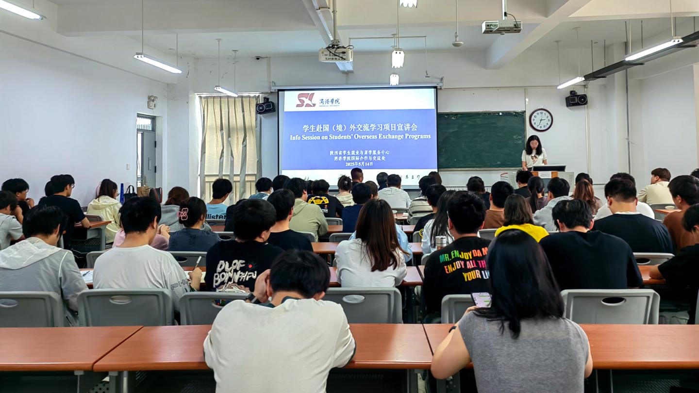 為拓寬學(xué)生國際視野、助力高質(zhì)量人才培養(yǎng),5月14日,國際合作與交流處聯(lián)合陜西省學(xué)生就業(yè)與服務(wù)中心在北新街校區(qū)和丹江校區(qū)分別舉辦2025年學(xué)生出國(境)交流學(xué)習(xí)項目宣講會,500余名學(xué)生參加活動。