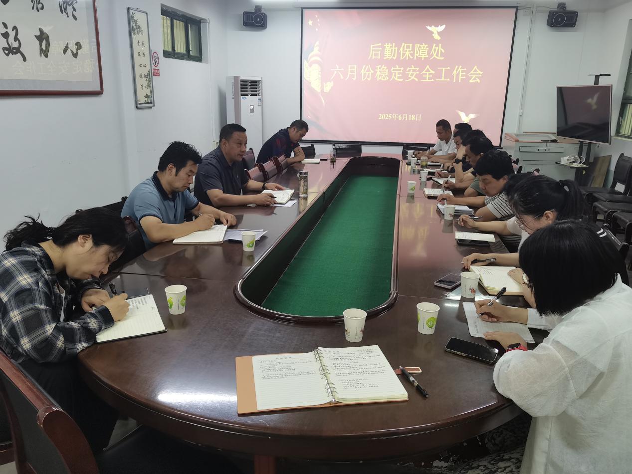 6月18日,后勤保障處組織召開(kāi)6月份穩(wěn)定安全工作專(zhuān)題會(huì)議,后勤保障處全體職工參加會(huì)議。會(huì)議傳達(dá)了學(xué)校穩(wěn)定安全工作會(huì)精神,集體學(xué)習(xí)了上級(jí)部門(mén)關(guān)于校園安全穩(wěn)定的相關(guān)文件,安排部署了畢業(yè)生離校和近期安全穩(wěn)定的各項(xiàng)工作。