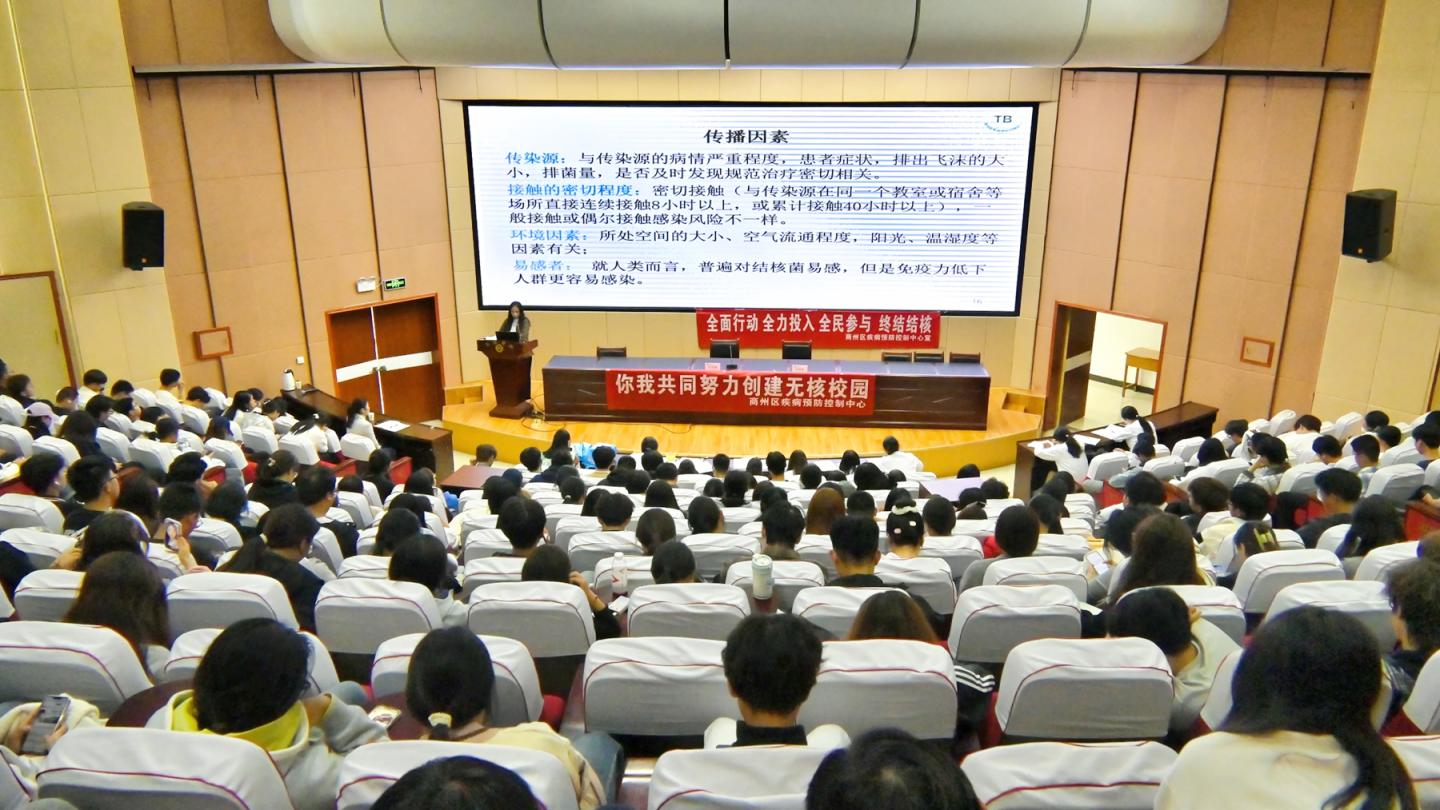 為筑牢校園健康防線,10月15日下午,校醫(yī)院特邀請商州區(qū)疾控專家張曉榮來我校開展結(jié)核病防控知識講座。2025級學(xué)生代表、新生輔導(dǎo)員、校醫(yī)院全體工作人員共550余人參加本次講座。校醫(yī)院院長任秀梅主持講座。
