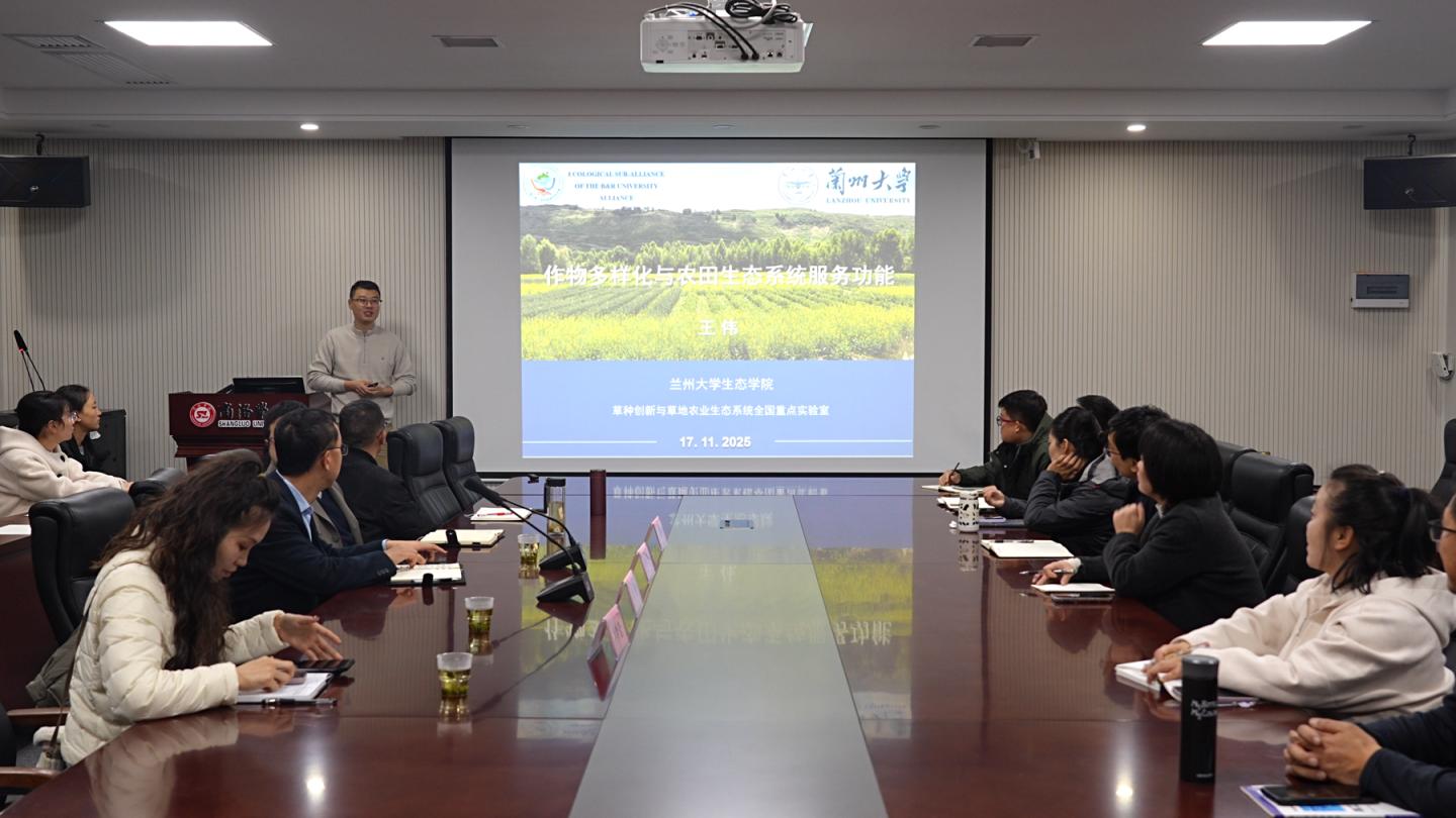 報(bào)告會(huì)上,王偉博士以《作物多樣性與農(nóng)田生態(tài)系統(tǒng)功能》為題,分享了所在科研團(tuán)隊(duì)在該領(lǐng)域的最新研究成果,他通過詳實(shí)的實(shí)驗(yàn)數(shù)據(jù)和生動(dòng)的田間案例,層層深入地揭示了作物多樣性在提升農(nóng)田生態(tài)系統(tǒng)功能方面的多重作用。李夢(mèng)瑩博士以《西北旱地地膜污染影響農(nóng)田碳循環(huán)的生態(tài)學(xué)機(jī)理》為題,為師生揭示了一條隱藏的生態(tài)鏈條,闡明治理地膜污染不僅是為了保護(hù)農(nóng)田環(huán)境,更是為了維護(hù)農(nóng)田生態(tài)系統(tǒng)的核心功能與長(zhǎng)期生產(chǎn)力發(fā)展。