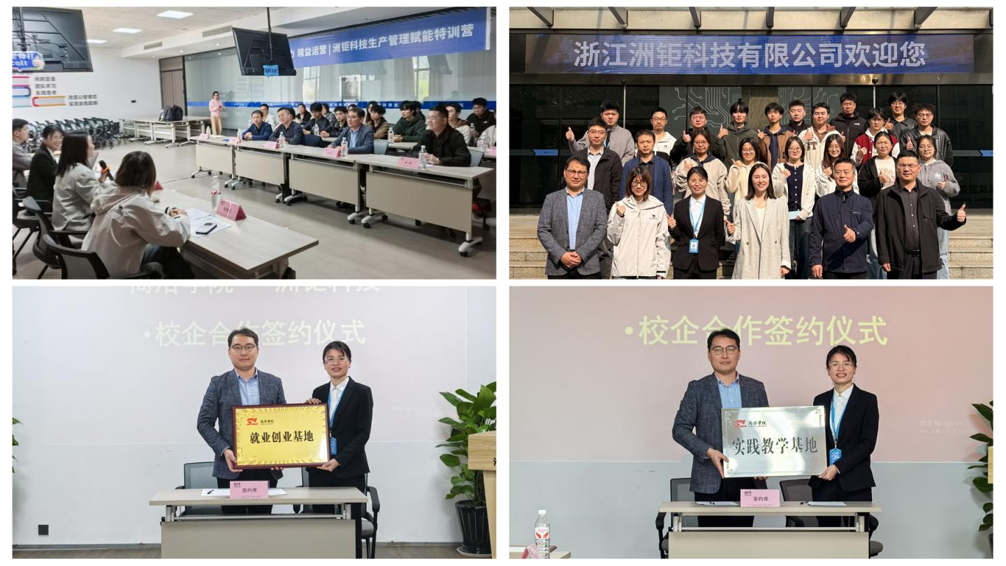 為進一步深化產(chǎn)教融合與校企合作、拓寬畢業(yè)生就業(yè)渠道和崗位,11月12日至16日 ,電信學院以送畢業(yè)生實習為契機,學院黨委副書記·副院長劉征文、電子信息科學系主任何建強、教師雷健及18名2026屆畢業(yè)生一行赴浙江湖州開展“訪企拓崗促就業(yè)”專項行動,并與浙江洲鉅科技有限公司簽訂校企合作協(xié)議。駐長三角(湖州)聯(lián)絡處負責人一同參與考察。