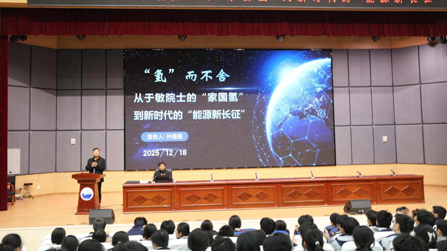 12月18日下午,陜西省商洛中學舉行科技副校長聘任儀式,化材學院教師孫強強受聘該職務,并以《氫而不舍:從于敏院士的“家國氫”到新時代的“能源新長征”》為題作專題科技報告。